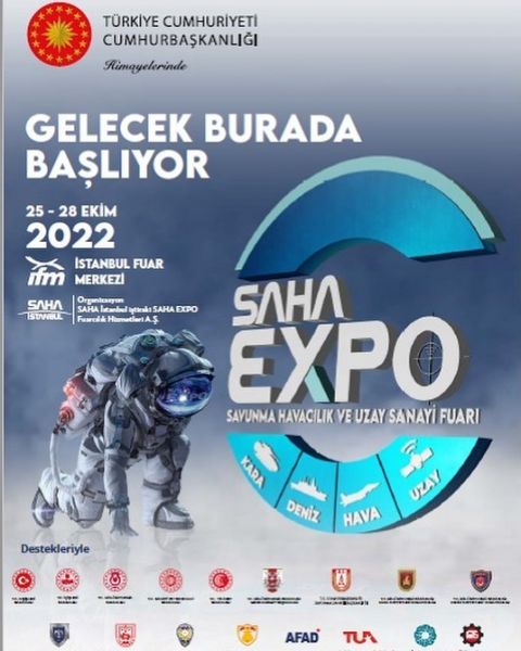 SAHA EXPO Savunma Havacılık ve Uzay Sanayi Fuarının üçüncüsü Cumhurbaşkanlığımızın himayelerinde 25-28 Ekim 2022 tarihleri arasında İstanbul Yeşilköy’deki İstanbul Fuar Merkezi’nde gerçekleştirilecektir. Bilgilerinize sunarız.