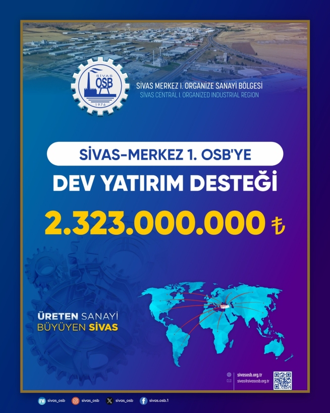 Sivas Merkez 1. Organize Sanayi Bölgesi, Cumhurbaşkanı Sayın Recep Tayyip Erdoğan’ın liderliği ve vizyonu doğrultusunda, Sanayi ve Teknoloji Bakanlığı tarafından 2026 Yılı Altyapı Yatırım Programı kapsamına alındı. Program çerçevesinde bölge için 2 milyar 323 milyon TL tutarında önemli bir altyapı yatırımı öngörülüyor.